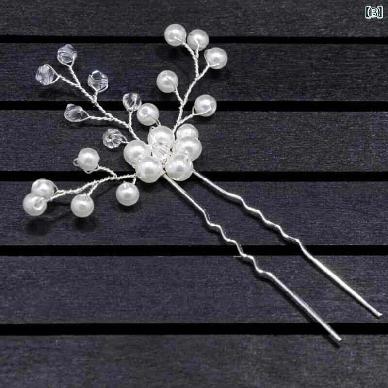 ヘアアクセサリー レディース 花嫁 ブライダル ウェディング 挙式 パーティー 二次会 手作り ハンドメイド パール パール ラインストーン U字型 かんざし 髪飾り ヘッドドレス 欧米風 エレガント ゴールド シルバー