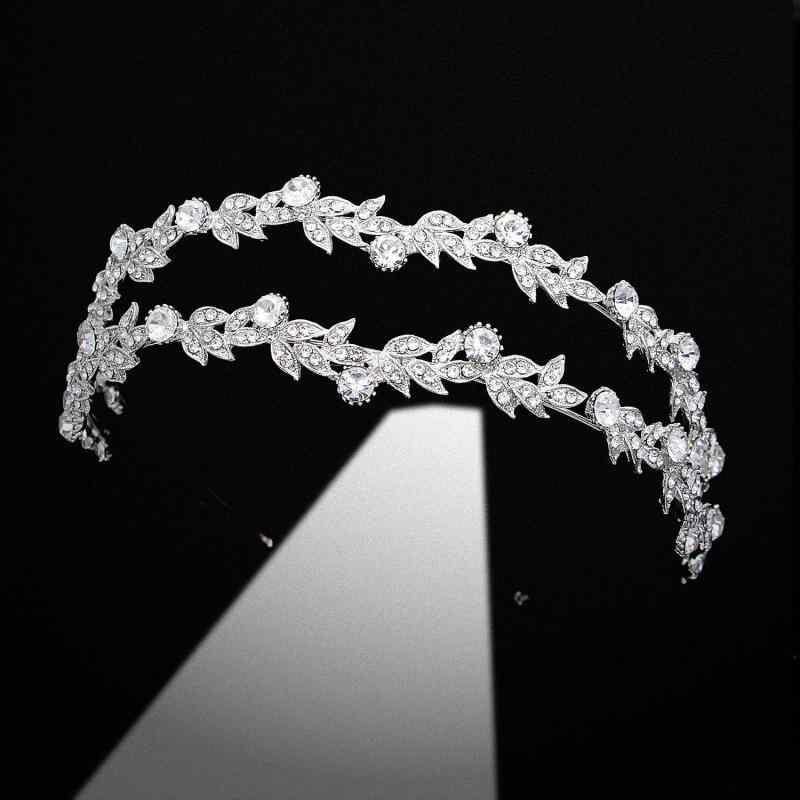 ティアラ レディース ヨーロピアンテイスト ラインストーン リーフ ダブル ブライダル ウェディング 結婚式 花嫁 カチューシャ ヘッドドレス ヘアアクセサリー 合金 シルバー パーティ 発表会