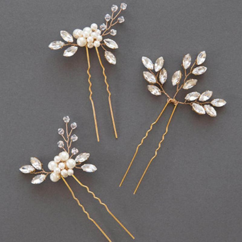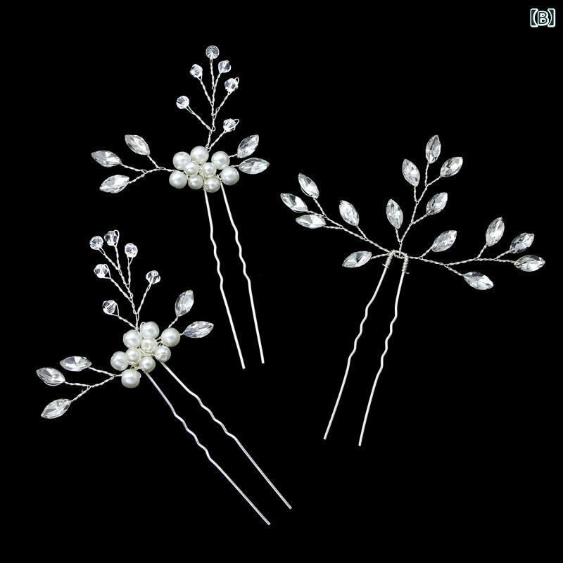 ヘアアクセサリー レディース 女性用 パール ラインストーン U字かんざし フラワー 花嫁 ブライダル ウェディング 髪飾り 手作り ヘアコーム ゴールド シルバー ヘッドドレス 華やか