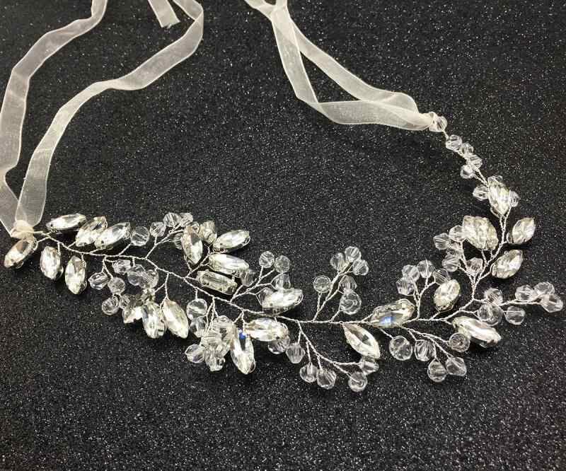 ヘアアクセサリー レディース 花嫁 結婚式 ブライダル 新婦 クリスタル 水晶 ヘッドドレス 髪飾り まとめ髪 アップヘア 欧米風 高級感 シルバー