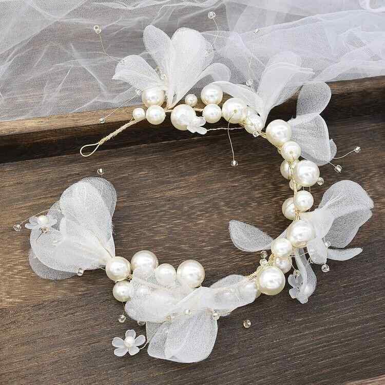 カチューシャ レディース ウェディング ブライダル 結婚式 パーティー 二次会 ホワイト 白 オーガンジー パール パール ソフトチェーン 華やか 髪飾り ヘッドバンド