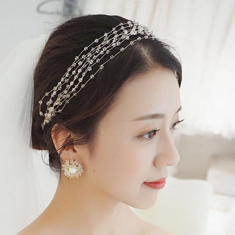ヘアアクセサリー レディース 女性用 韓国風 花嫁 ウェディング ブライダル ヘッドドレス カチューシャ クリスタル ビーズ 多層 フラワー ラインストーン ゴールド