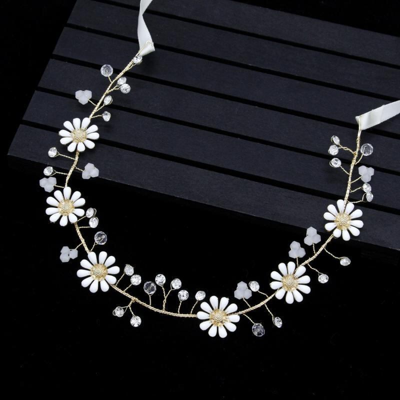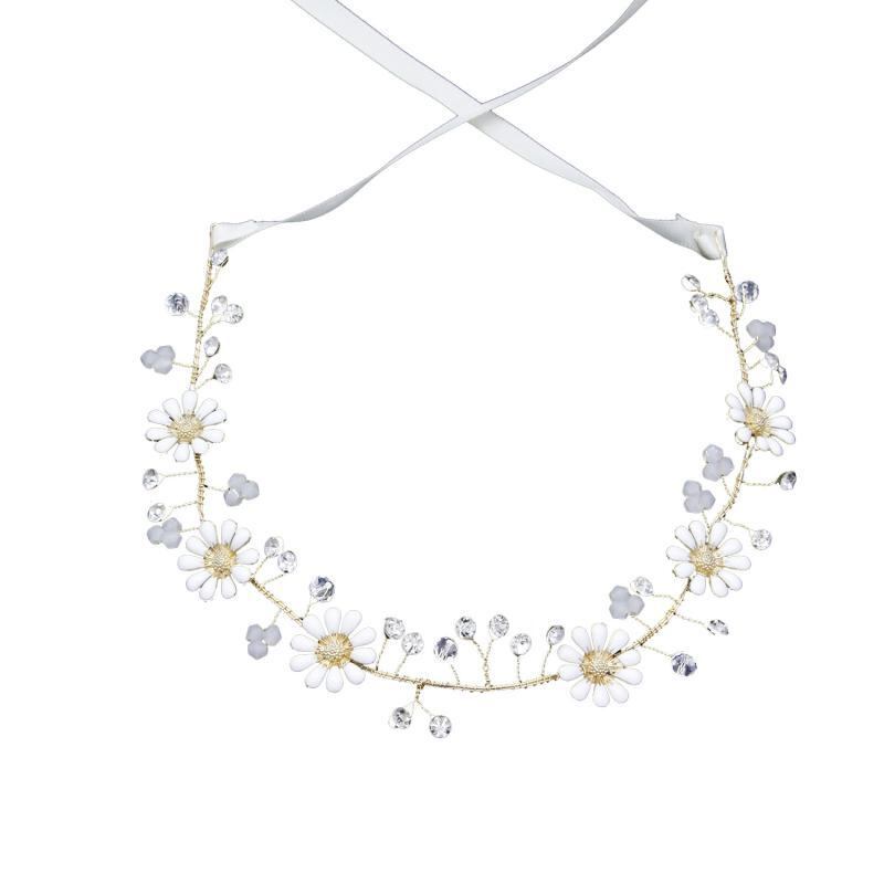 ヘッドドレス レディース 花嫁 ブライダル 韓国風 ハンドメイド ゴールド デイジー フラワーモチーフ 合金製 結婚式 披露宴 二次会 カチューシャ ヘアアクセサリー 上品