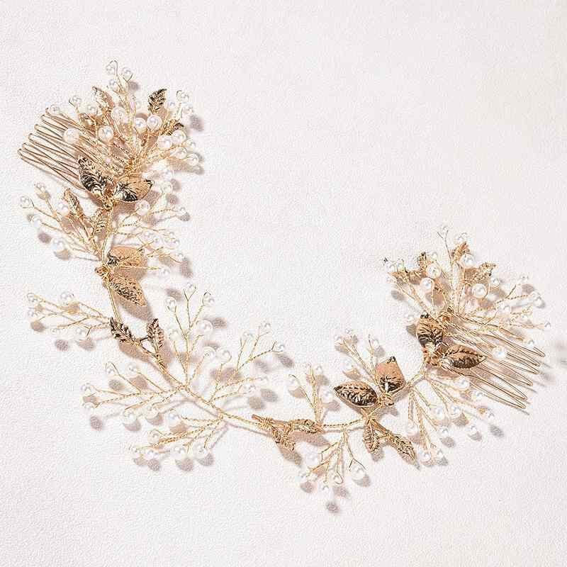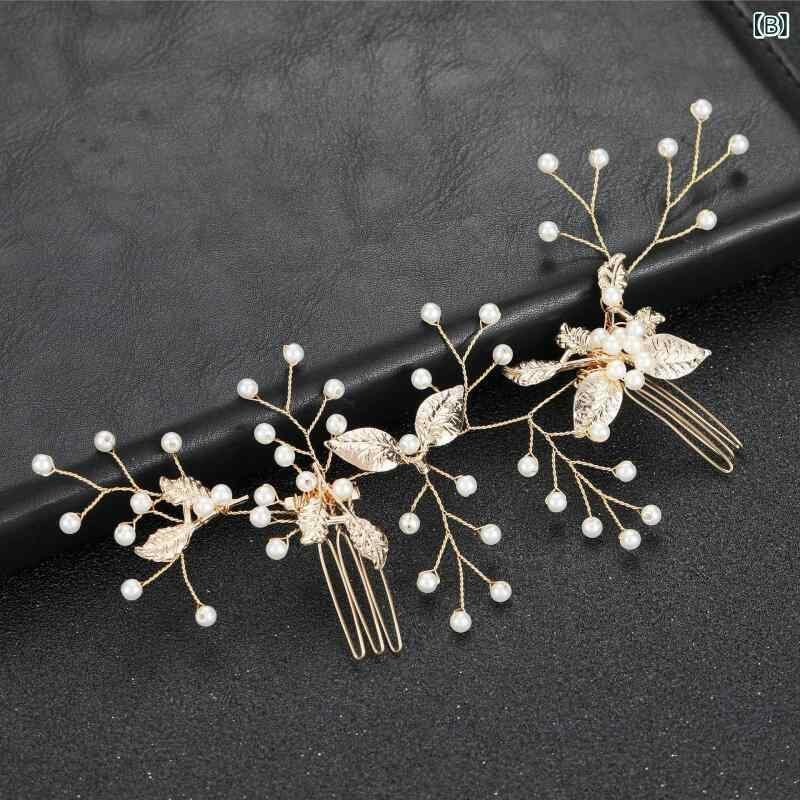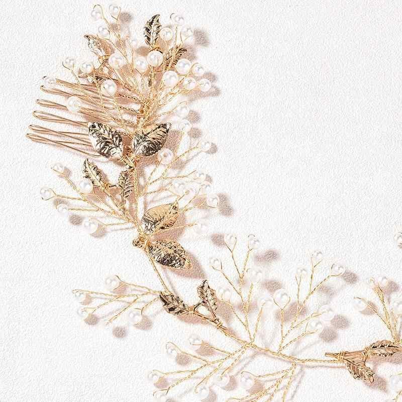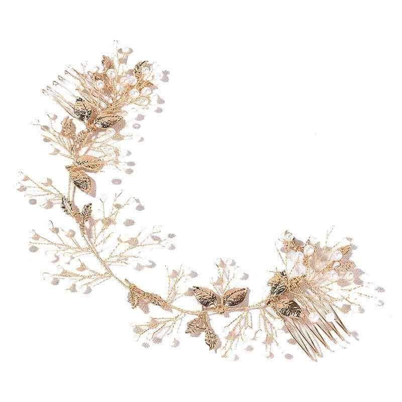 ヘアアクセサリー 花嫁 ブライダル レディース ヨーロピアン フレンチ バロック調 クラシカル 結婚式 披露宴 パーティー ウェディング ヘッドドレス ゴールド リーフ パール ヘアコーム 上品 髪飾り