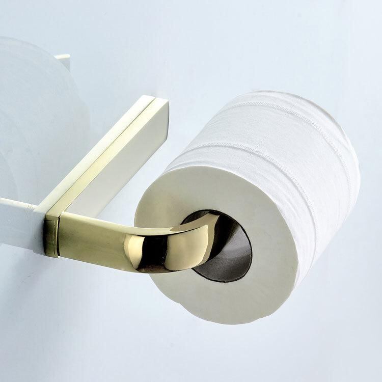 バスルームアクセサリー 真鍮製 ジルコニアゴールド 壁付け トイレットペーパーホルダー 紙巻器 タオルハンガー タオル掛け 2点セット 高級感 モダン おしゃれ 浴室 洗面所用