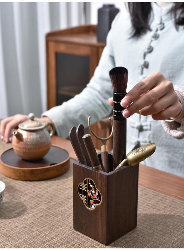 茶道具 高級黒檀 功夫茶器 中国茶道 六君子セット お茶入れ 茶挟 茶匙 茶刷 プーアル茶刀 道具立て ティータイム モダン