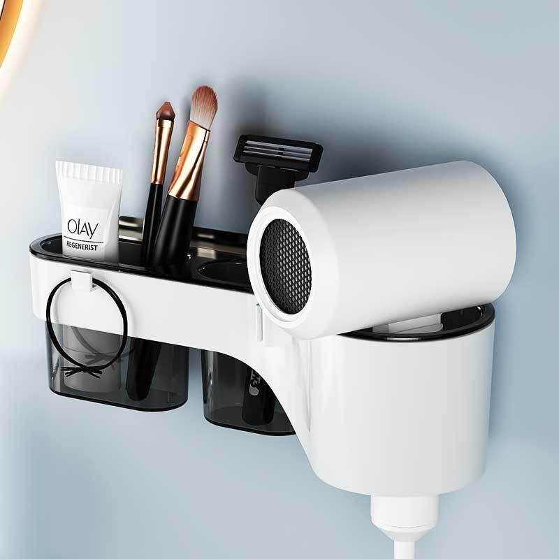 ヘアドライヤーホルダー 穴あけ不要 吸盤式 壁掛け バスルーム 洗面所 ドライヤースタンド 収納ラック 整理棚 プラスチック製 軽量 耐荷重5kg アメリカンスタイル ブラック ピーコックブルー