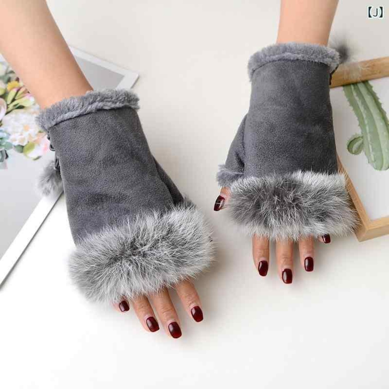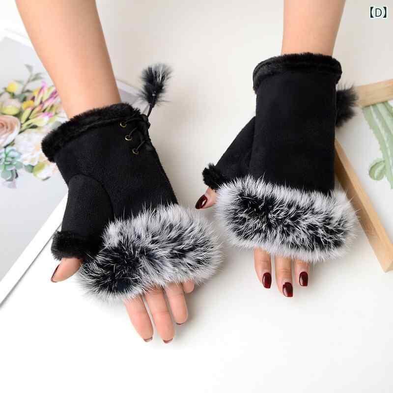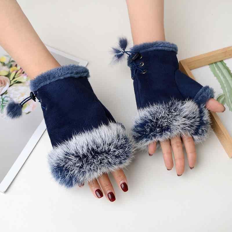 手袋 レディース グローブ スエード ラビットファー 指なし 防寒 保温 冬用 パソコン作業 スマートフォン対応 ブラック グレー ピンク ワインレッド オフホワイト