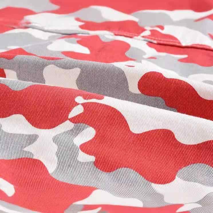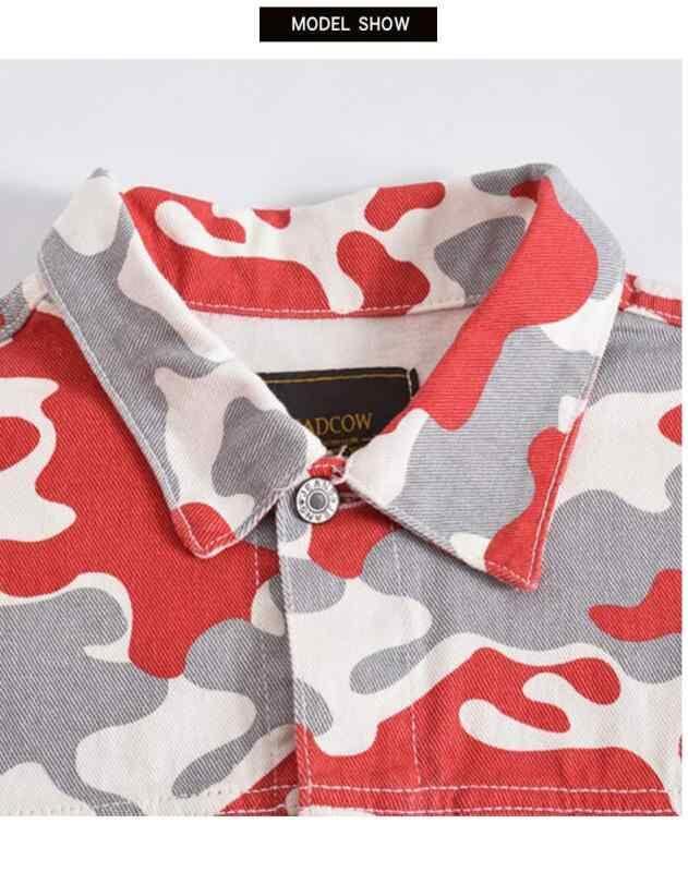 ジャケット メンズ 男性用 ストリート系 デニムアウター Gジャン ブルゾン 春秋 レッド 迷彩柄 カモフラージュ ドロップショルダー 肩落ち ゆったり ルーズフィット カジュアル 普段使い コットン ウォッシュ加工