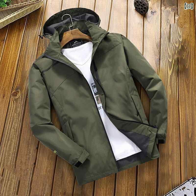 アウター 男女兼用 マウンテンパーカー ウィンドブレーカー フード付き シェルジャケット 防水 撥水 防風 防寒 通気性 軽量 薄手 裏起毛 ポリエステル 登山 キャンプ アウトドア レジャー カジュアル 普段使い 春秋