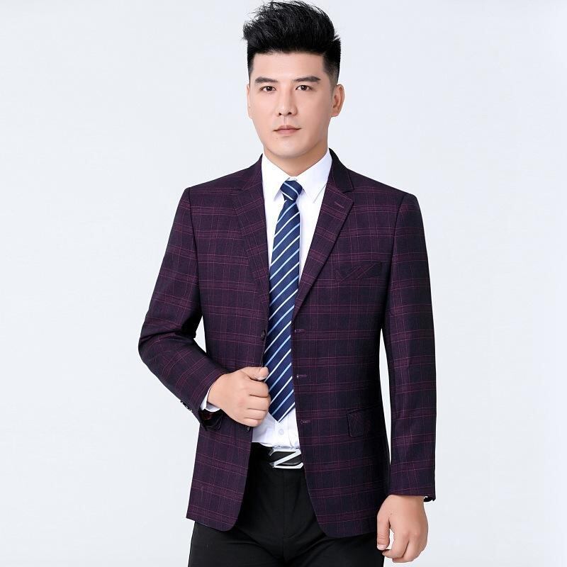 ・カテゴリ: ビジネス紳士 (35歳以上)・シルエット: ストレート・襟型: テーラードカラー・前立て: シングル3つボタン・スタイル: カジュアル・柄: チェック・生地: ウール地・主な素材: 羊毛80%・裏地素材: ポリエステル・着用シーン: デイリー・対象: ミドルエイジ・加工: ノーアイロン・デザイン詳細: マルチポケット・着丈: レギュラー・袖丈: 長袖・ポケットスタイル: フラップポケット・カラー: パープルチェック・サイズ展開: 46, 48, 50, 52, 54, 56, 58・裾デザイン: ラウンドヘム・対象年齢: 大人・性別: 男性・商品カテゴリ: カジュアルスーツ