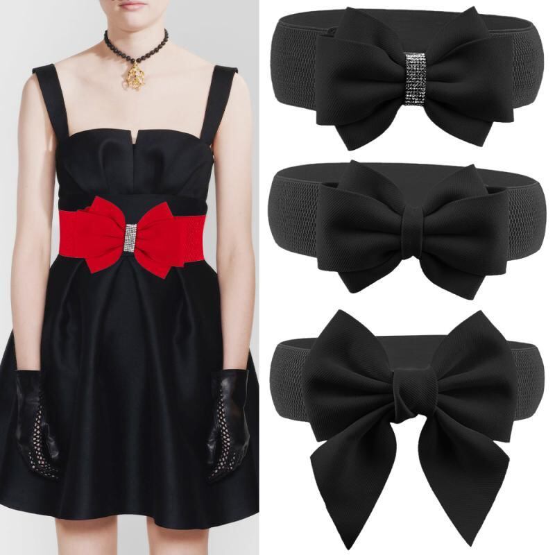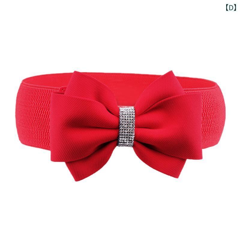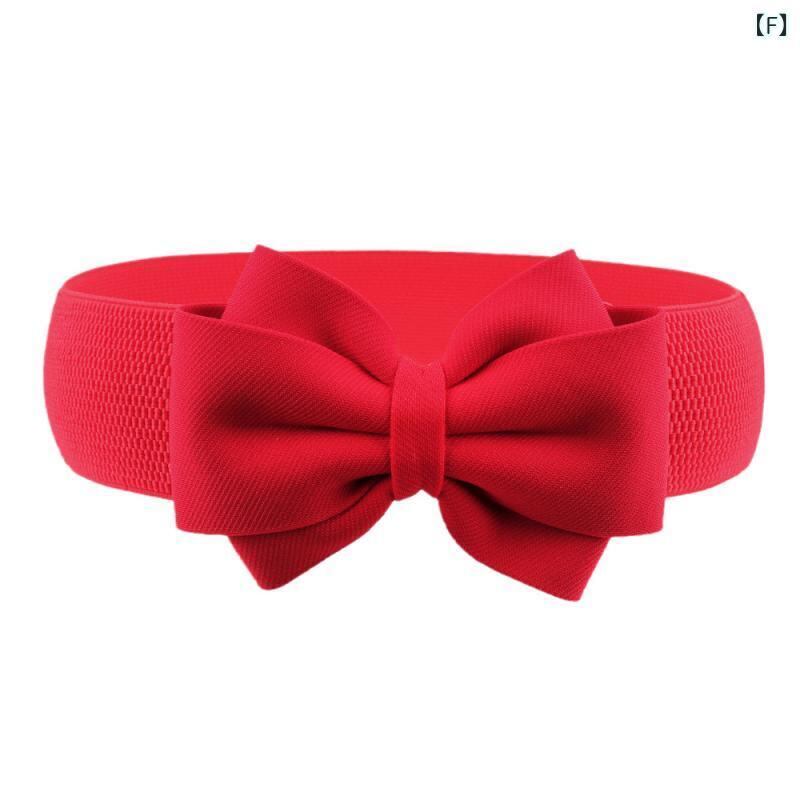ベルト レディース 女性用 リボン装飾 ラインストーン 幅広 ウエストマーク サッシュベルト 伸縮性 ストレッチ スカート ドレス 万能 きれいめ フェミニン 大きいサイズ レッド 赤色 布製 スナップボタン