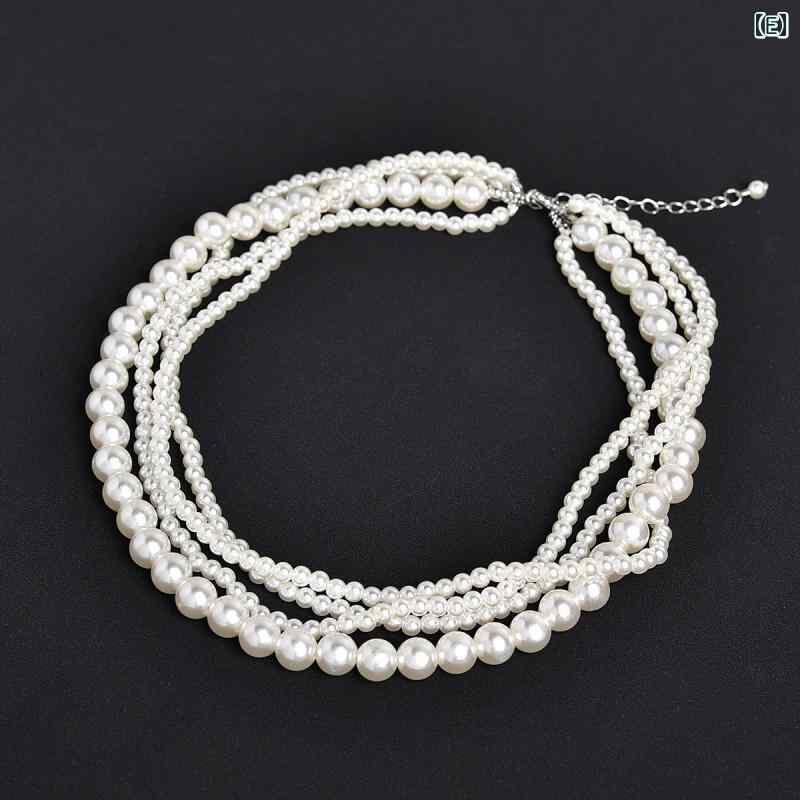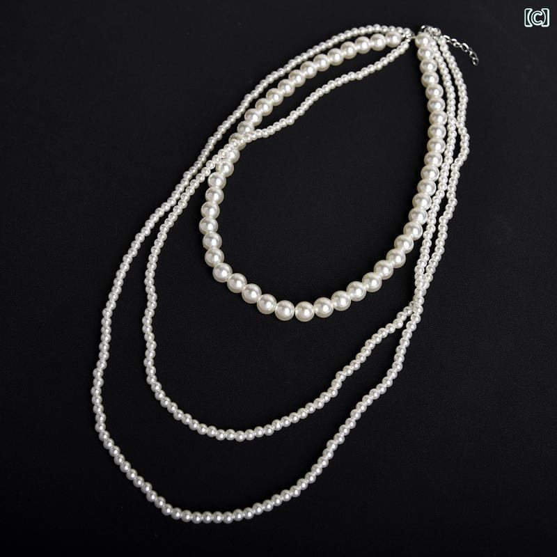 ネックレス 花嫁 ブライダル ウェディング 二連 パール 上品 シンプル レトロ クラシック 西洋風 欧米風 結婚式 パーティー ドレス ジュエリー 金色 銀色