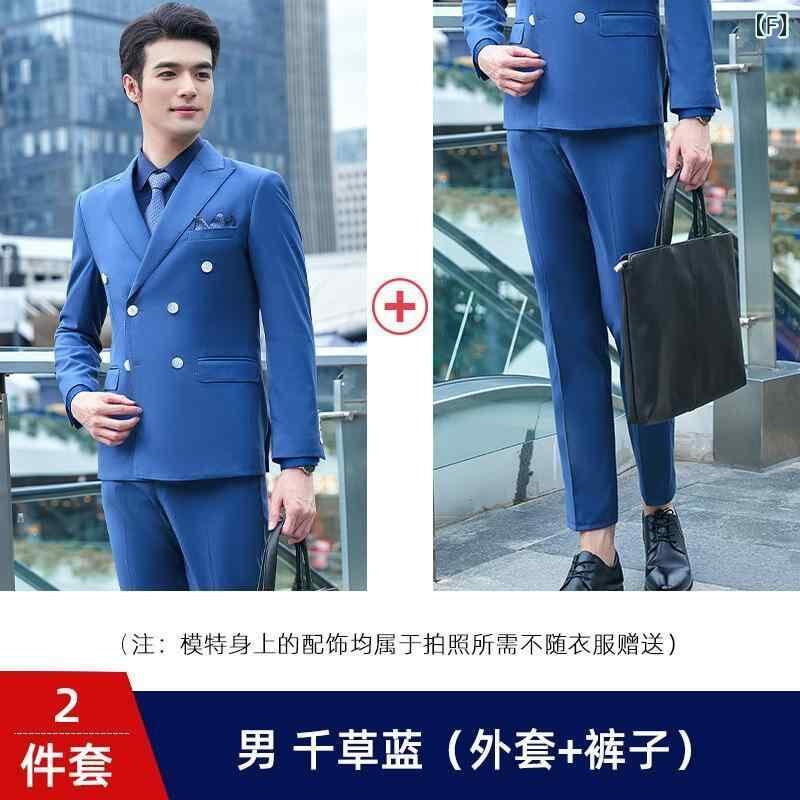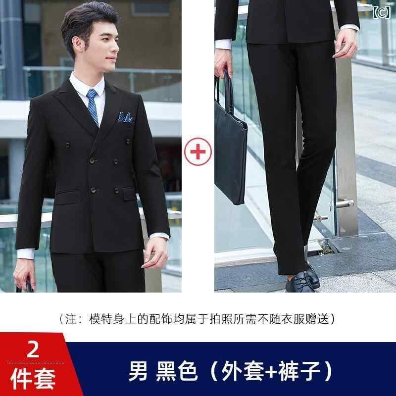 ビジネススーツ 男女兼用 ダブルブレスト スリムフィット オフィス 通勤 フォーマル 教職員 事務服 ジャケット パンツ セットアップ ポリエステル素材