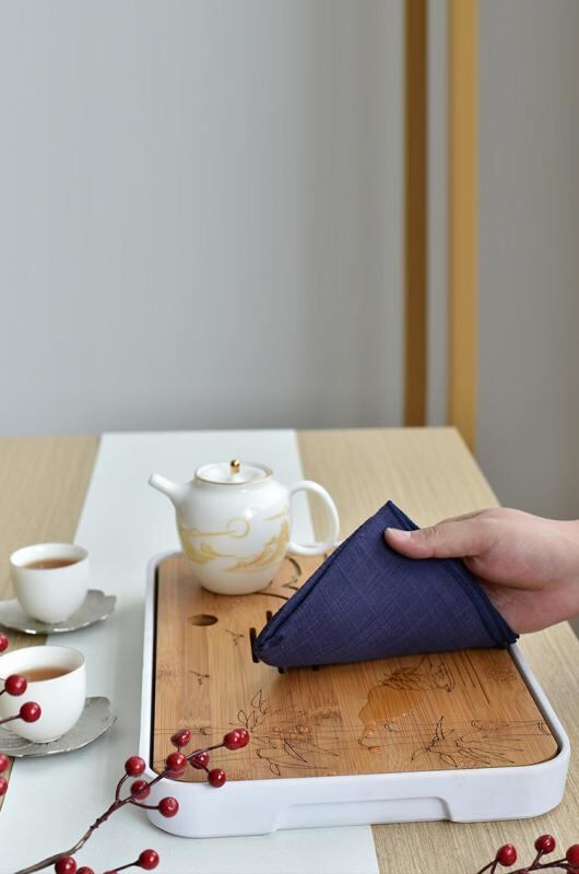 茶巾 綿麻 吸水厚手 無地 蓮柄 新中華風 中国茶道具 茶壺拭き テーブルクロス ふきん マルチクロス お手入れ簡単