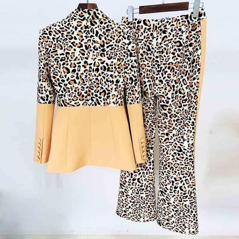 パンツスーツ レディース 欧米風 ファッション ヒョウ柄 プリント 切り替え シングルボタン テーラードジャケット フレアパンツ ツーピース セットアップ カジュアル きれいめ
