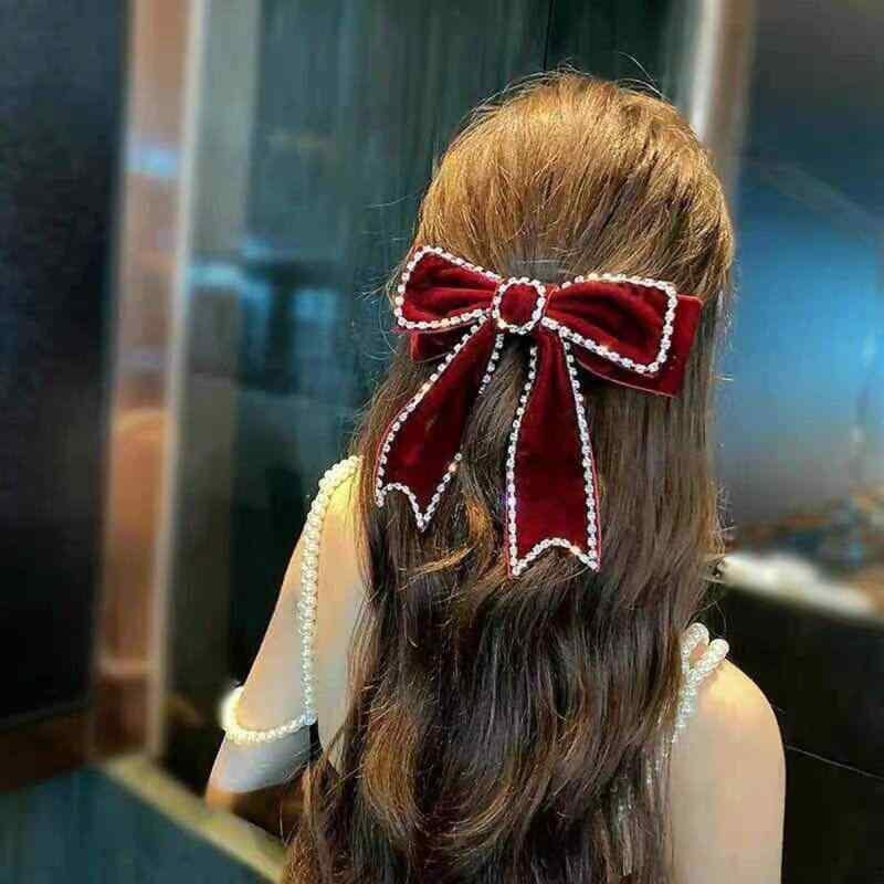 髪飾り レディース レトロ ワインレッド ビッグリボン ベルベット バレッタ 結婚式 お呼ばれ フォーマル パーティー 上品 エレガント 韓国風 ヘアクリップ