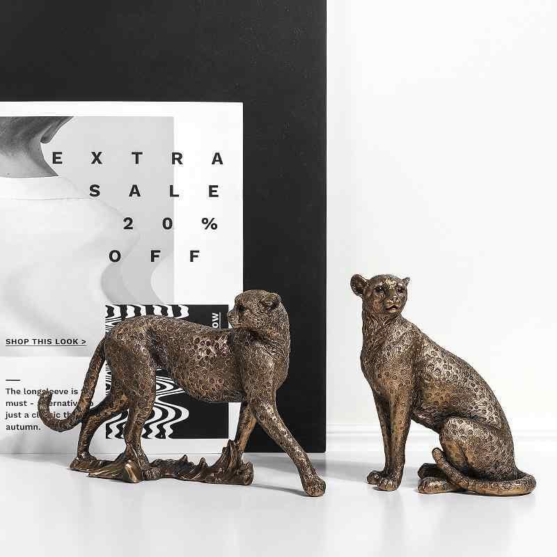 インテリア オブジェ ヒョウ 豹 モダン シンプル おしゃれ レジン 樹脂製 リビング オフィス デスク 卓上 玄関 飾り ディスプレイ ゴールド 金色 レトロ アンティーク調
