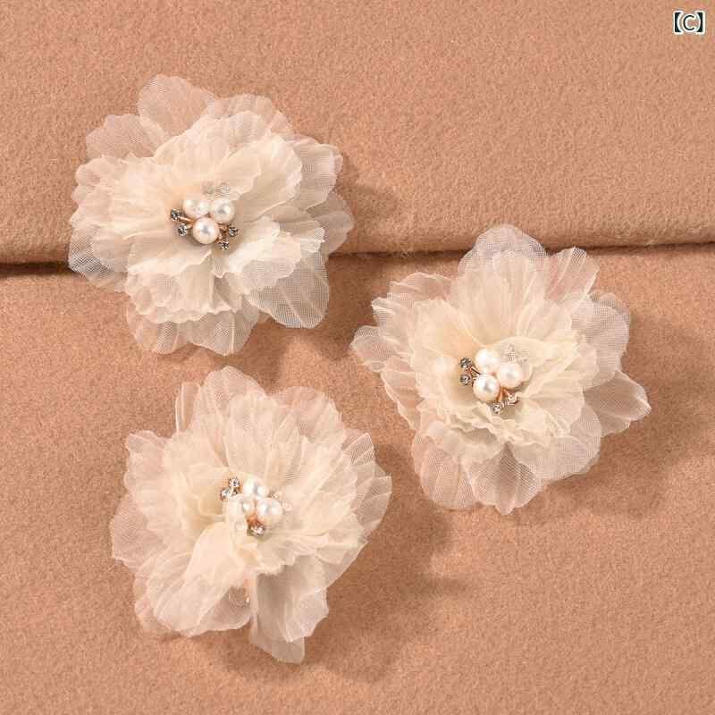 ヘアクリップ レディース 3個セット ホワイト パール調 フラワーモチーフ プリーツ 髪留め 髪飾り 韓国風 かわいい エレガント フェミニン 普段使い お出かけ 上品