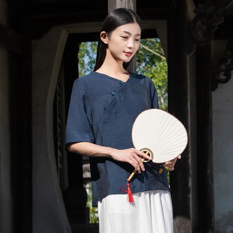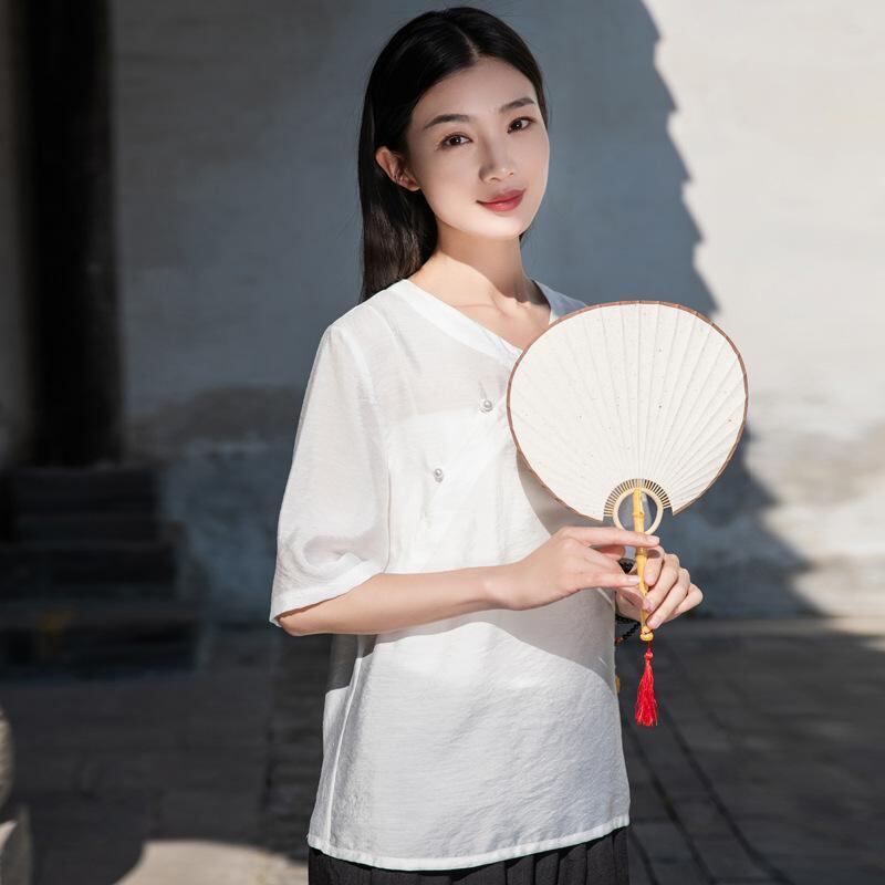 Tシャツ レディース 春夏 無地 Vネック ゆったり ルーズフィット 着痩せ スタイルアップ 薄手 シアー 再生繊維 テンセル シェルボタン 半袖 ブラウス風 トップス カジュアル ホワイト ピンク ネイビー