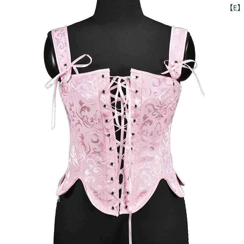 ビスチェ 女性用 コルセット レースアップ 編み上げ ボーン入り 花びら ジャカード織り ウエストシェイプ ボディメイク スタイルアップ 補正下着 ポリエステル グリーン ブルー ブラック ホワイト ピンク