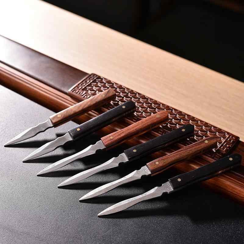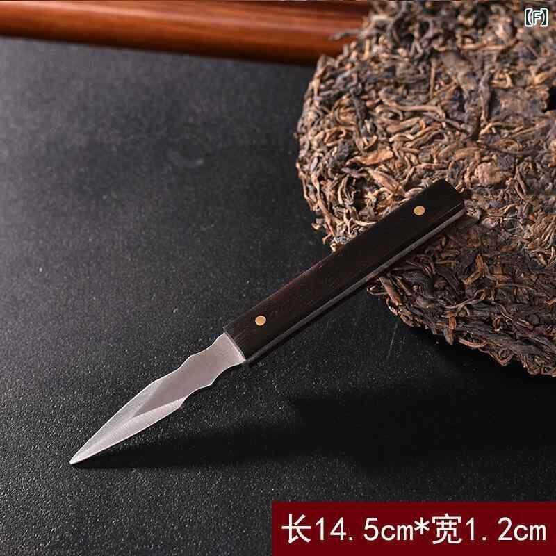 茶器 茶道道具 プーアル茶刀 剣型 花梨 黒檀 無垢材 天然木 合金 本格的 高品質 中国茶 喫茶 ダークブラウン 木目調