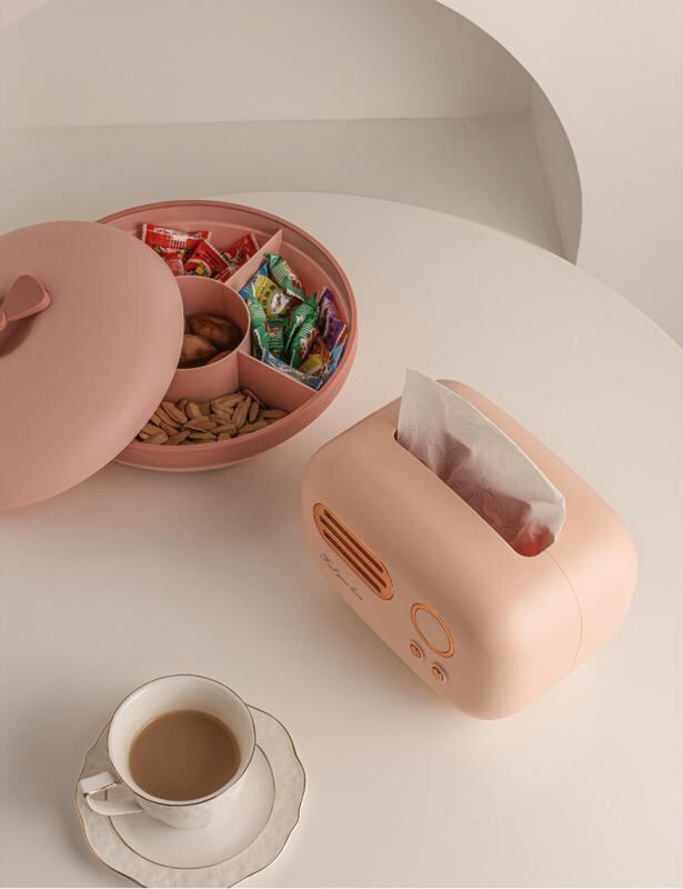 ティッシュケース ラジオ型 北欧風 家庭用 リビング 玄関 寝室 センターテーブル インテリア雑貨 収納 モダン シンプル 上品 高級感 プラスチック製 樹脂製 車内 洗面所 ピンク