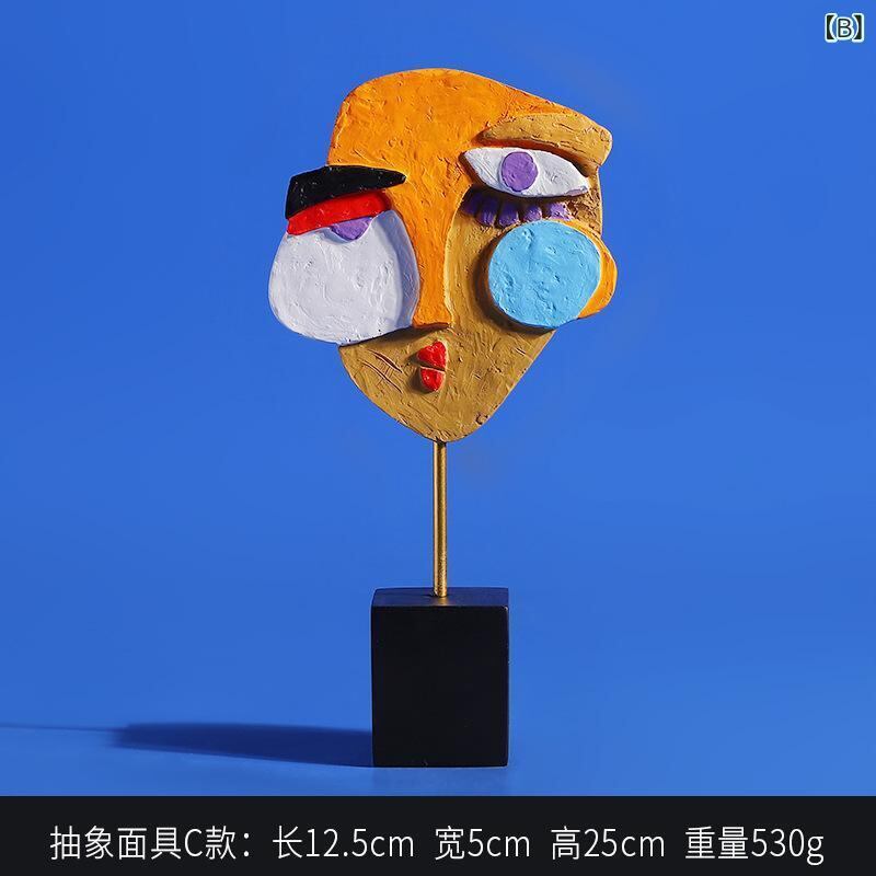オブジェ 抽象 フェイスアート カラフル 歪み モダン インテリア 樹脂製 置物 カフェ 店舗 リビング 玄関 個性的 ビッグフェイス 部屋飾り