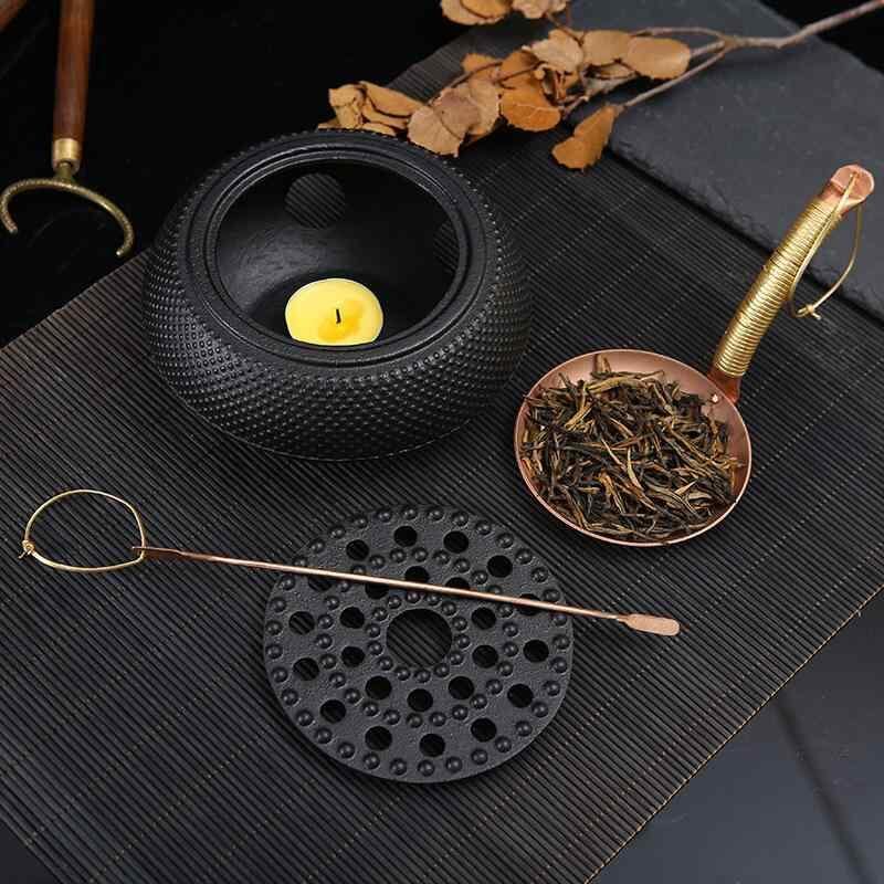 茶道具 和モダン 鋳鉄製 茶器コンロ ティーウォーマー 焙煎器 焙煎皿付き アルコール燃料対応 湯沸かし 鉄瓶対応 アウトドア 屋外 喫茶店 中国茶器
