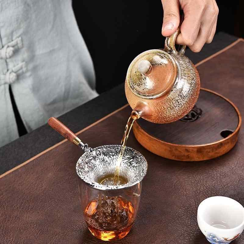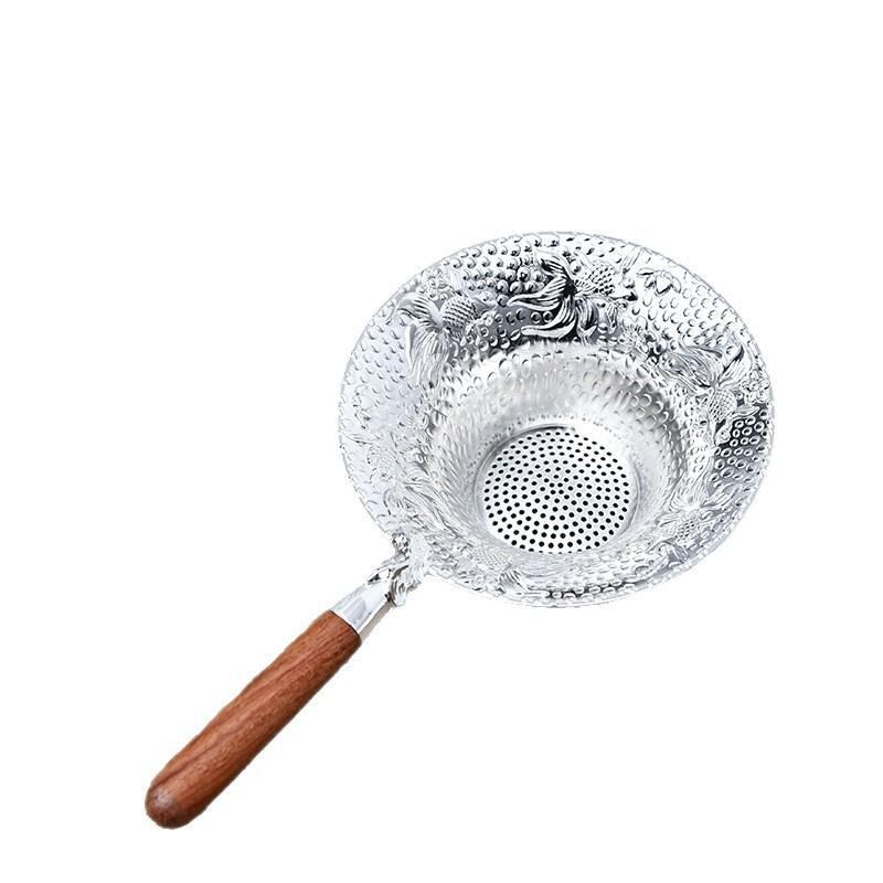 茶こし 銀メッキ ローズウッド柄 槌目模様 魚デザイン おしゃれ モダン ティーインフューザー ストレーナー 網 フィルター お茶 紅茶 ハーブティー ティータイム 茶道具