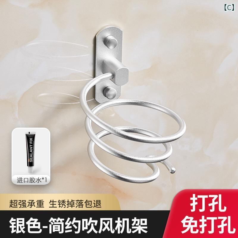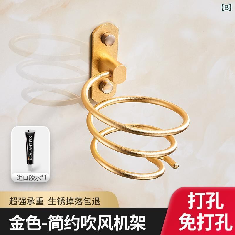 ヘアドライヤー ホルダー スタンド 壁掛け 穴あけ不要 ウォールマウント アルミ製 アルマイト加工 収納ラック 洗面所 浴室 バスルーム 省スペース ブラック ゴールド シルバー 北欧風