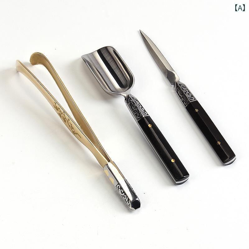 茶道具 ステンレス製 黒檀 紅酸枝 木製 茶挟 茶ばさみ 茶杓 茶さじ 茶刀 ティーナイフ 3点セット 茶道 茶芸 ティーセレモニー お茶会 ティータイム おしゃれ 和モダン 中国茶 実用 キッチン小物 贈答品