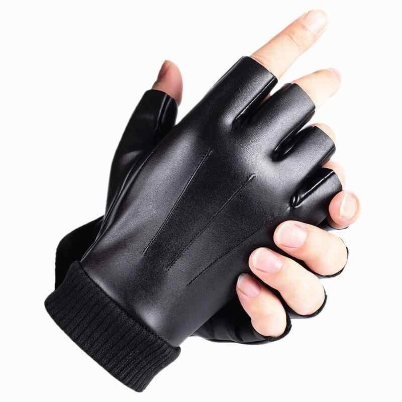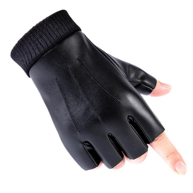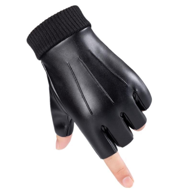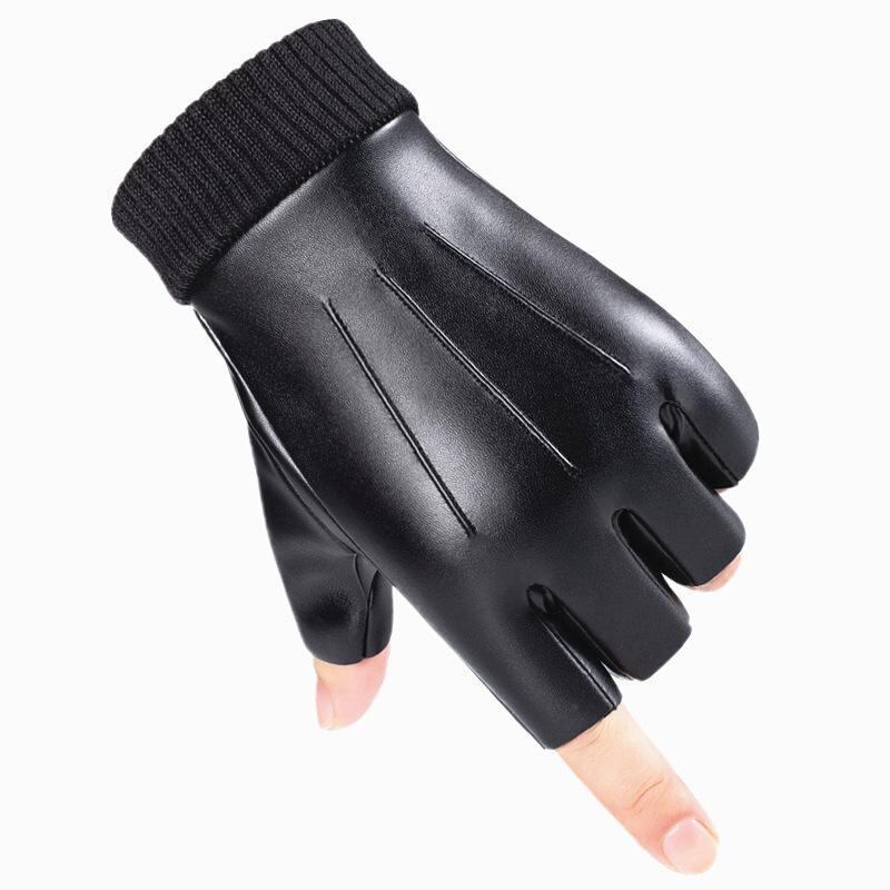 手袋 メンズ 男性用 指なし ハーフフィンガー 革手袋 レザーグローブ 合皮 フェイクレザー 秋冬 裏起毛 保温 防寒 防水 滑り止め タッチパネル対応 スマホ操作 アウトドア サイクリング 運転 ドライブ スポーツ