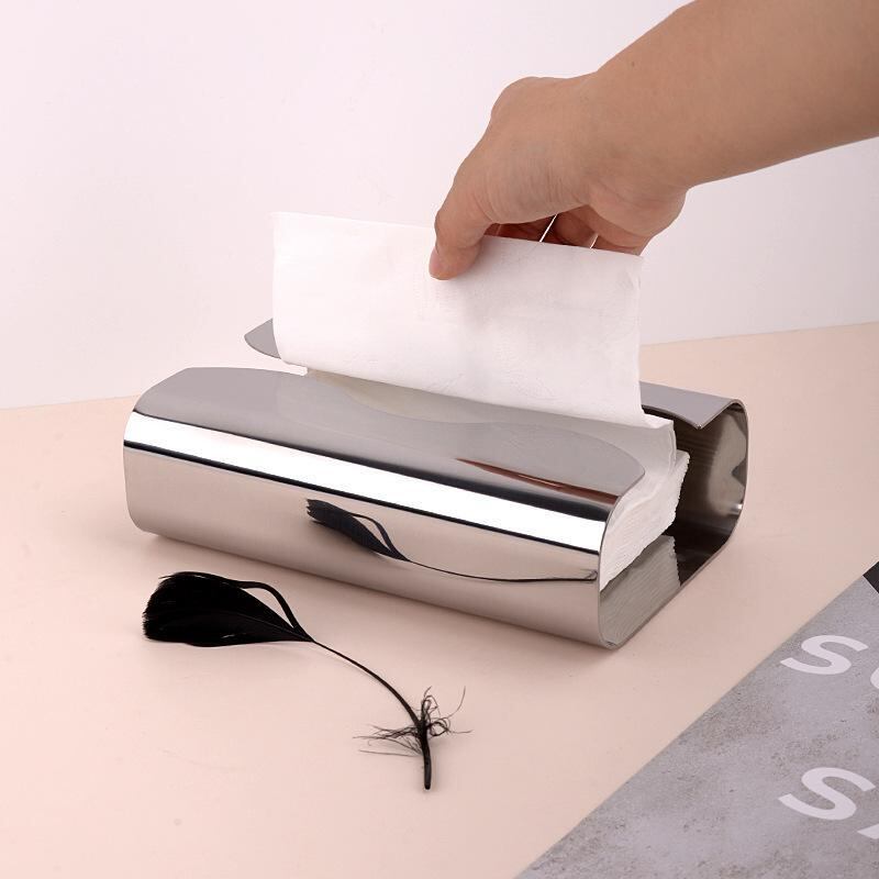 ティッシュケース 北欧デザイン 軽やかラグジュアリー ステンレス製 曲面 ウェーブ型 鏡面仕上げ ミラー加工 卓上 リビング 洗面所 多機能 収納ボックス 詰め替え