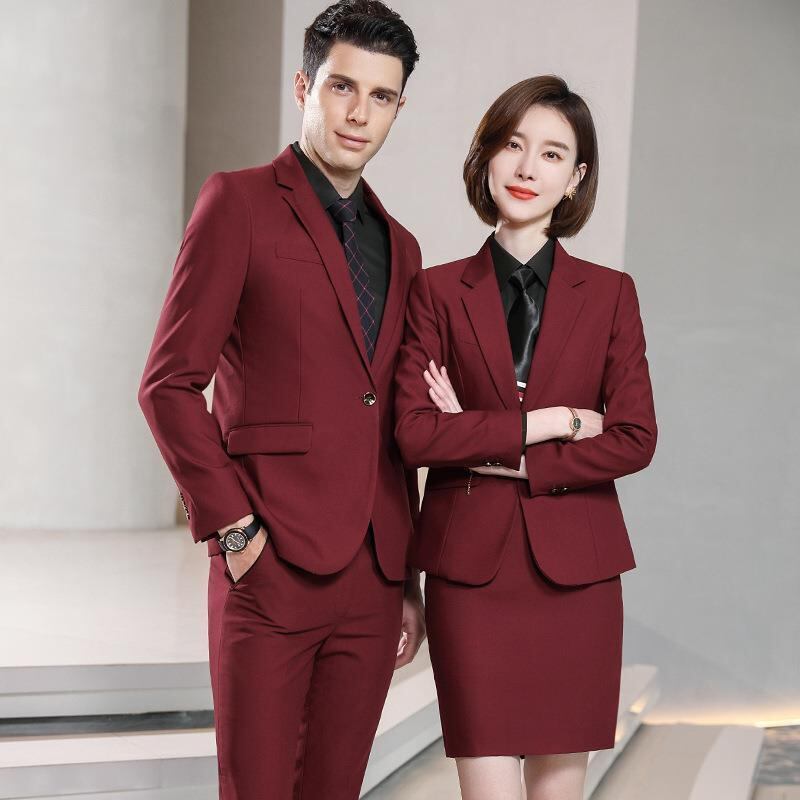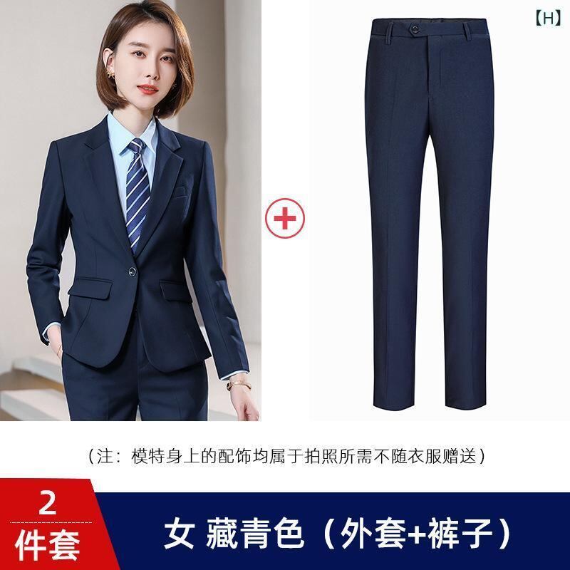 スーツ 男女兼用 ユニセックス 紺色 ネイビー ビジネス オフィス 企業 銀行 保険 事務服 制服 ワークウェア フォーマル セットアップ シングルブレスト 1つボタン ノッチドラペル スリムフィット アセテート繊維 秋