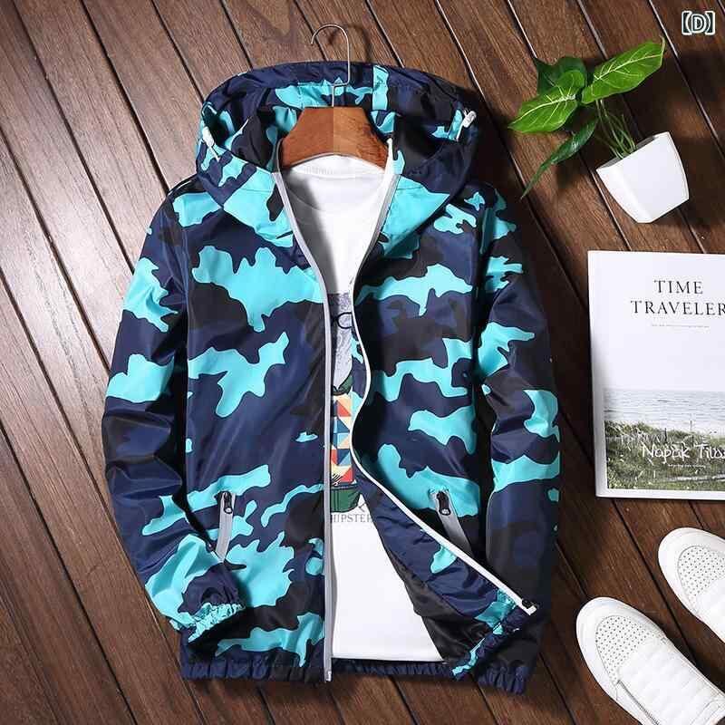 ジャケット メンズ 迷彩 フード付き ライトアウター 春夏 スポーツ アウトドア カジュアル 長袖 ブルゾン ジャンパー ポリエステル