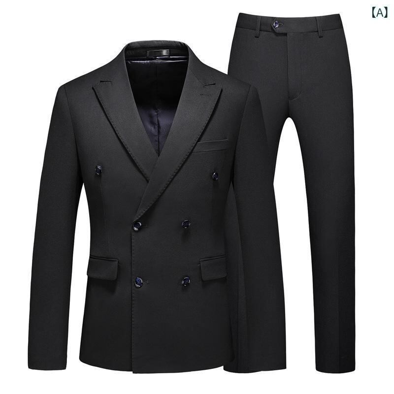 スーツ メンズ 男性用 セットアップ スリーピース 3ピース ダブルブレスト ダブルボタン スリムフィット 細身 無地 単色 大きいサイズ ビッグサイズ 新郎 結婚式 婚礼 フォーマル 礼服 ビジネス オフィス 黒 白