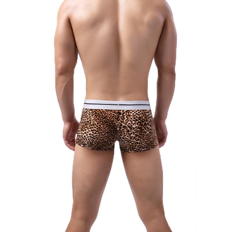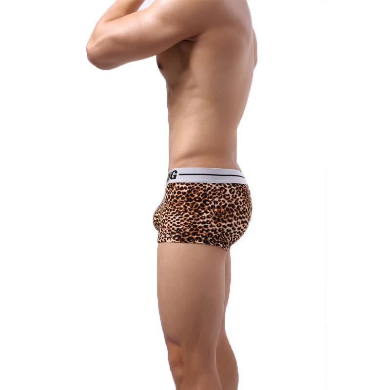 ボクサーパンツ メンズ 男性用 ヒョウ柄 ローライズ U凸デザイン 立体構造 セクシー 快適 肌触り 伸縮性 ポリエステル ニット素材 普段使い カジュアル イエロー ブラック ブラウン