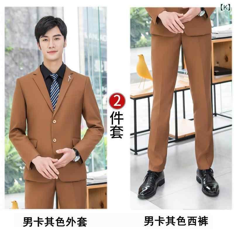 スーツ 男女兼用 ベージュ ワインレッド スリーピース ジャケット ベスト パンツ 韓国風 スリムフィット ビジネス フォーマル 結婚式 礼服 ポリエステル混紡 無地