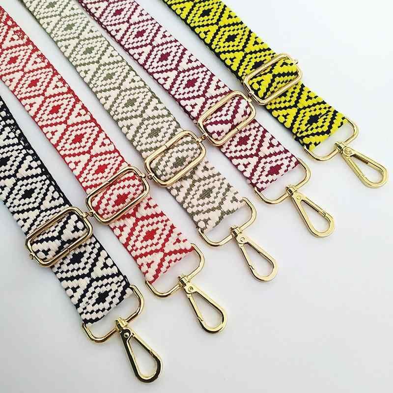 バッグストラップ レディース カラフル 多色 調節可能 ワンショルダー 斜めがけ 肩掛け 交換用 ロングストラップ 刺繡 ジャガード織り ポリエステル コットン 混紡 カジュアル 普段使い