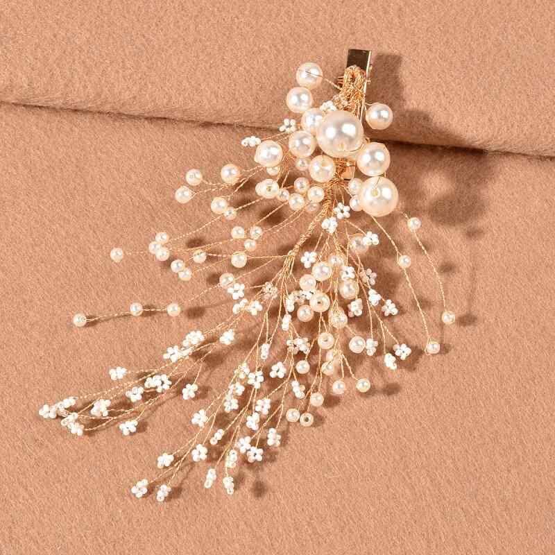 ヘアアクセサリー レディース ウェディング 結婚式 花嫁 披露宴 パーティー ハンドメイド パール パール サイドクリップ 髪飾り 髪留め ヘッドドレス ゴールド シルバー 韓国風 清楚 上品 エレガント