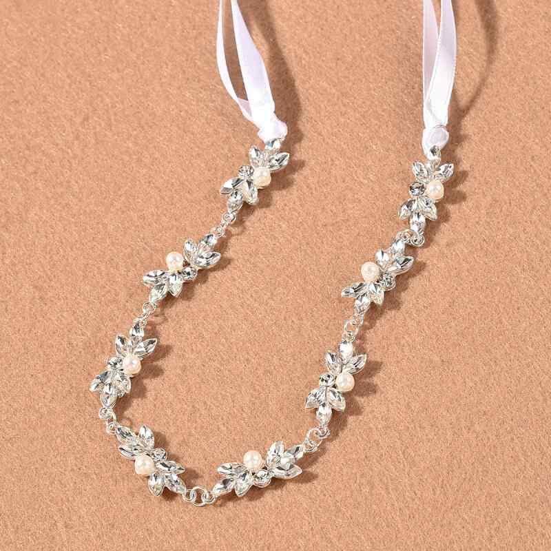 ヘッドドレス レディース ブライダル ウェディング 結婚式 花嫁 前撮り 披露宴 パーティー ガラス クリスタル ラインストーン 髪飾り アップヘア ヘアバンド ヘアチェーン ゴールド シルバー 合金