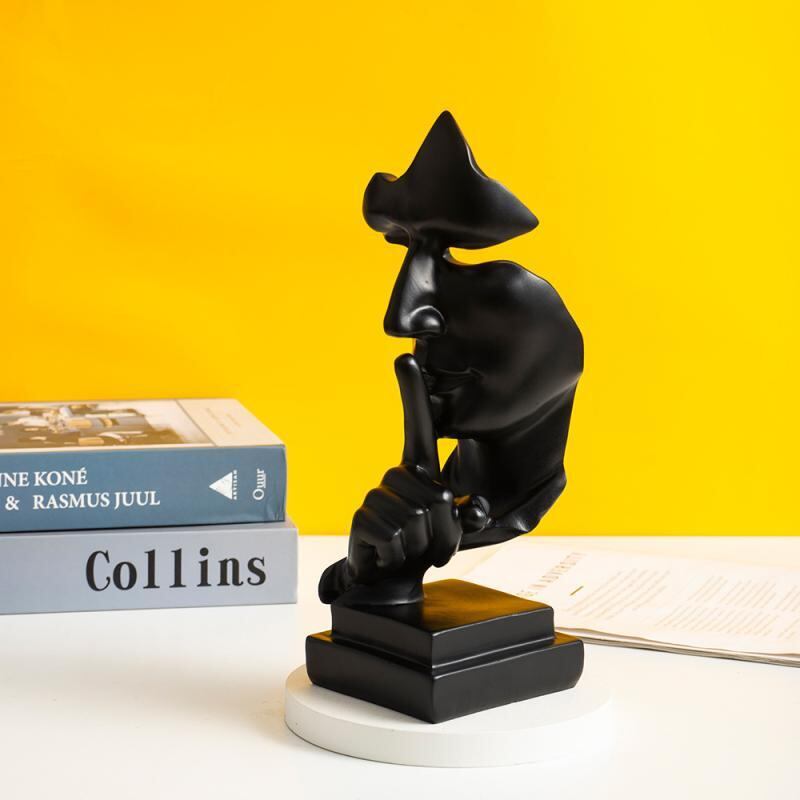 オブジェ 北欧 沈黙は金 樹脂製 約27cm 置物 ブラック モダン スタイリッシュ インテリア リビング 書斎 オフィス 玄関 ワインラック 卓上飾り 高級感