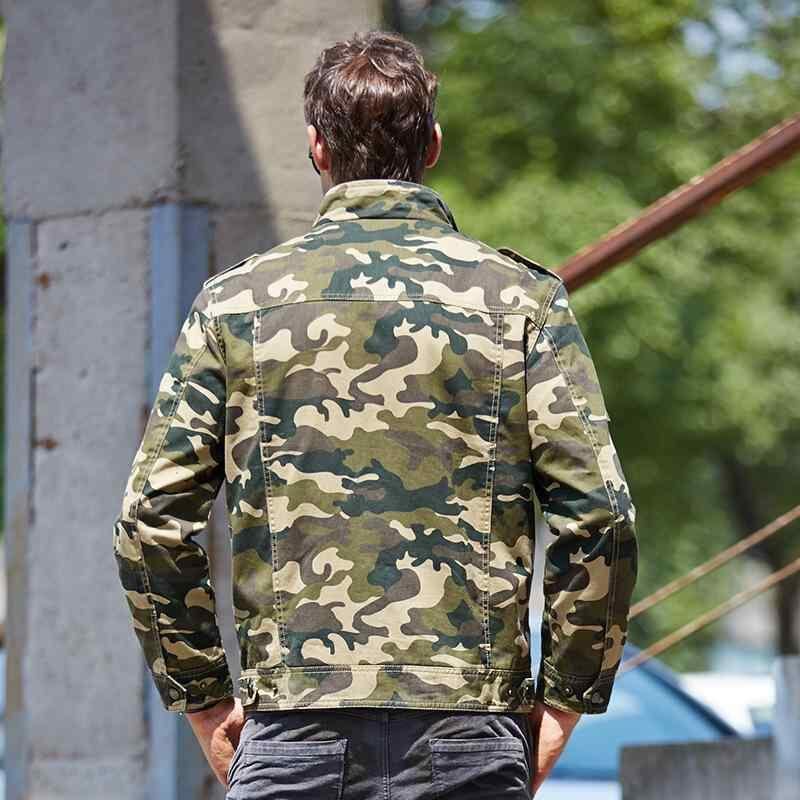ジャケット メンズ 男性用 アメリカンミリタリー カモフラージュ柄 ウォッシュ加工 スタンドカラー 立ち襟 コットン 綿 マルチポケット レギュラーフィット カジュアル デイリーユース アウター カーキ アーミーグリーン