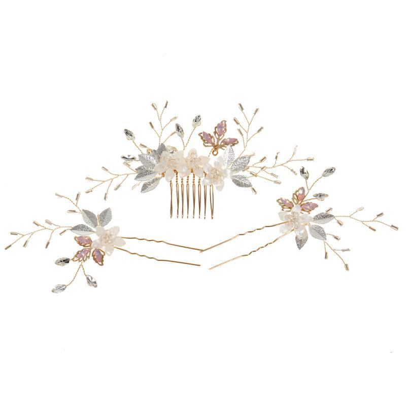 ・カラー展開: ピンクオパール(コーム+ヘアピン2点), ブルーオパール(コーム+ヘアピン2点)
