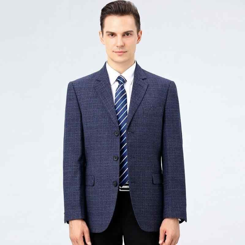 ジャケット メンズ 春秋 ウール混 チェック柄 ビジネス オフィス カジュアル シングルブレスト ストレートシルエット イージーケア ブルーチェック