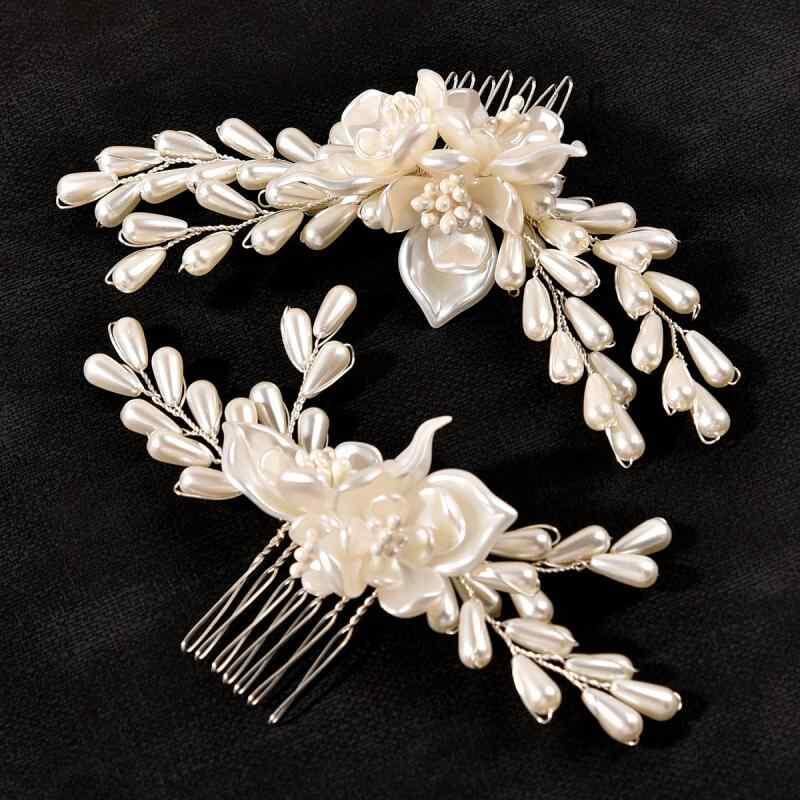 ヘッドドレス レディース 2個セット ホワイトパール フラワー ヘアコーム コーム 髪飾り 花モチーフ 花嫁 ウェディング 結婚式 二次会 パーティー 合金