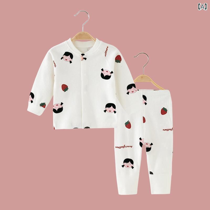 ベビー肌着 男女兼用 コットン100% 前開き セパレート 上下セット 長袖 長ズボン 秋冬 春秋 吸湿速乾 柔らか 起毛 ルームウェア パジャマ 部屋着 動物柄 キャラクター