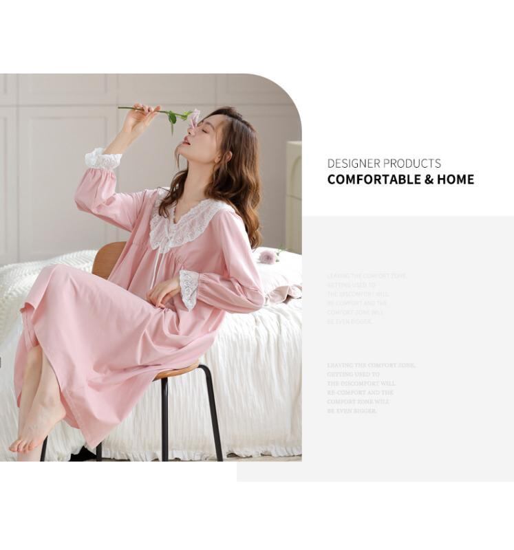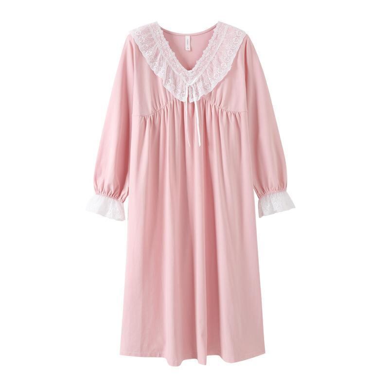 ワンピース レディース コットン 長袖 パジャマ ナイトウェア ルームウェア 部屋着 春秋 かわいい マタニティ ロングワンピース リラックス 快適