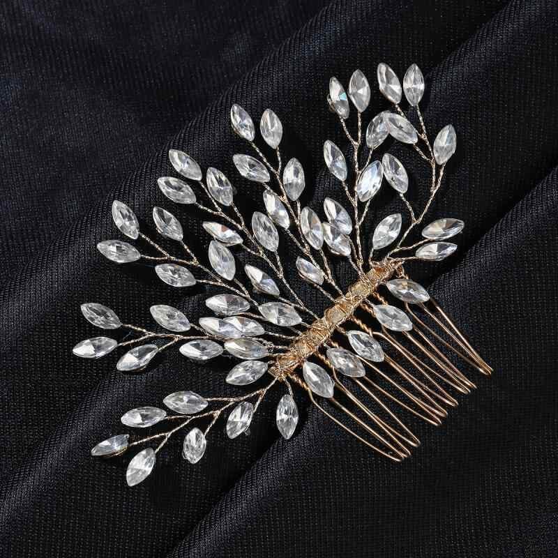 髪飾り レディース ブライダル ウェディング 結婚式 披露宴 パーティー フォーマル 手作り ハンドメイド ガラス マーキスカット ラインストーン クリスタル シルバー ゴールド ヘアコーム コーム かんざし エレガント 上品 華やか